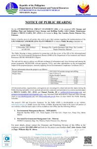 On the ENVIRONMENTAL IMPACT STATEMENT (EIS) of the proposed LPG Storage and Refilling Plant and Industrial Gases Storage and Refilling Facility with Cylinder Maintenance Project of PRYCE GASES, INC. (PGI) to be located at Brgy. Sta. Lourdes, Puerto Princesa City, Palawan.