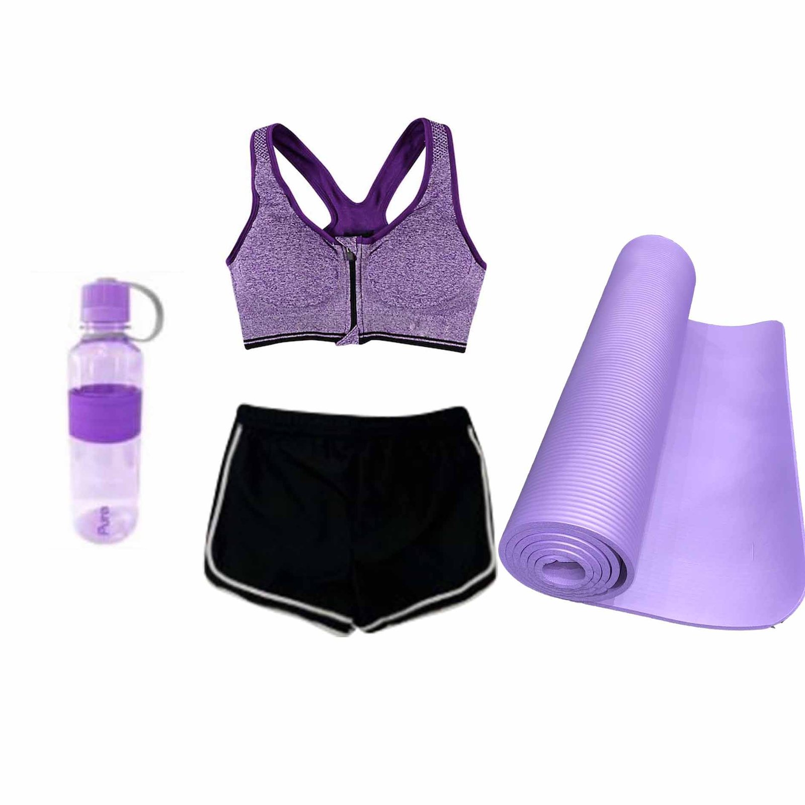 Black workout shorts + violet sports bra = elegance, energy, exercise