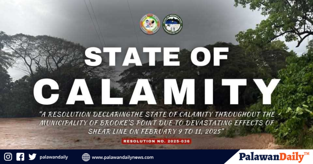 Idineklara ng lokal na pamahalaan ng Brooke’s Point, Palawan ang state of calamity matapos ang matinding pag-ulan dulot ng shear line, na nagdulot ng malawakang pagbaha at pinsala sa kabuhayan at imprastraktura.